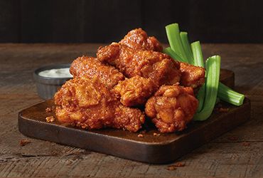 10 alas de pollo empanadas con un blend de especias a su elección: suave, medio o picante, acompañadas con salsa Blue Cheese y apio crocante.